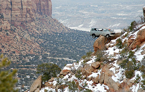 中新网1月29日电 据英国媒体报道,美国一名男子近日开车差点坠入科罗拉多国家保护区附近的山崖,所幸被一大块巨石拦住,汽车一半悬空在170英尺高的峭壁上,场面极其惊险,救援人员及时赶到,该男子死里逃生。