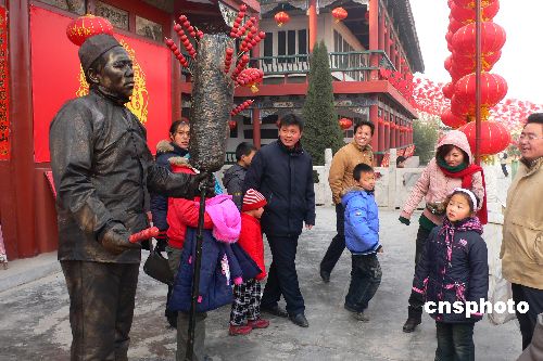 图:活体雕塑 复古造型惹人爱(2)——中新网