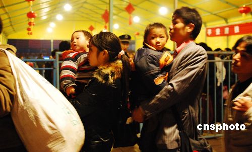 1月30日,江西九江火车站迎来返程农民工客流高峰。据了解,全天发送旅客同比增长31%。中新社发 胡国林 摄