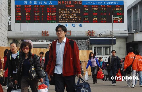 随着春节长假临近结束,广州火车站出站口人流开始明显增多,外来工和大学生毕业生纷纷提前返粤找工。中新社发 柯小军 摄