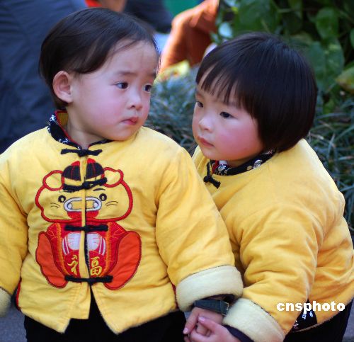 牛年春节期间,多对可爱的双胞胎姐妹花身穿新衣,在家长带领下在广西南宁各大公园、广场中游玩过节,形象天真可爱,吸引民众眼球。