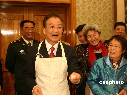 图:温家宝在中国驻英使馆包饺子(2)——中新网
