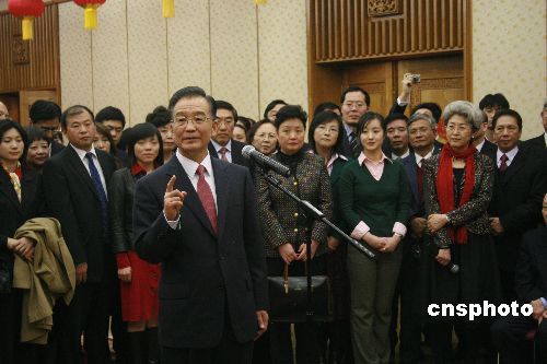 图:温家宝在中国驻英使馆发表讲话——中新网