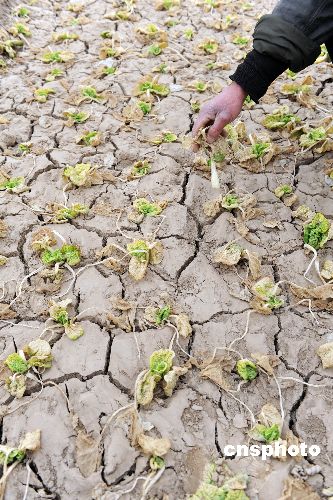 安徽省气象台近日发布干旱红色预警,预计2月1日至8日,全省综合气象干旱指数达到特旱(气象干旱为50年一遇),淮河以北地区将有60%以上的农作物受旱。安徽省防汛抗旱指挥部近日也发布旱情1号通报。通报介绍,2008年10月下旬以来,全省合肥以北地区,特别是淮北地区降雨严重偏少,发生严重旱情。据统计,全省受旱面积已达2417万亩,其中严重受旱面积1200多万亩。中新社发 张延林 摄
