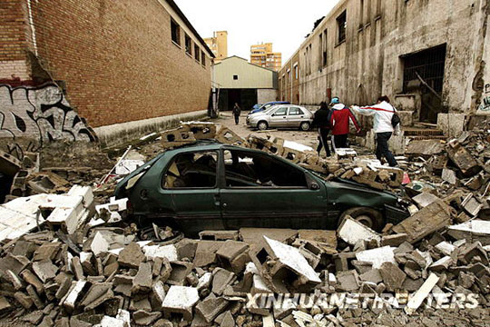 2月2日,在西班牙南部的马拉加,人们从被龙卷风毁坏的一辆汽车旁走过。