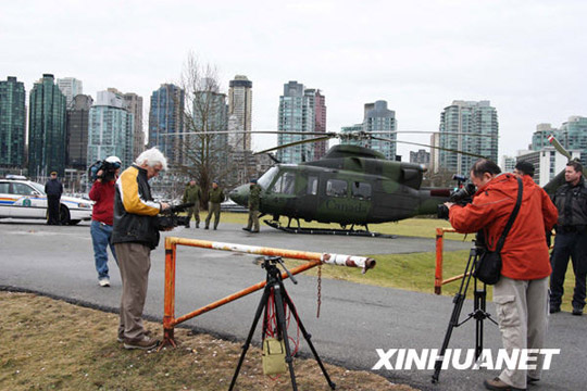 2月2日,安保人员在展示将用于2010年冬奥会安保工作的海陆空设备。当日,将用于冬奥会安保工作的部分海陆空设备首次在媒体记者前亮相。