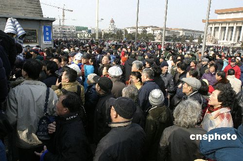 正阳门原计划三日十二时至十六时免费开放,但早九点已有两、三千市民在门口绕圈排起了长龙。人群中,有年过八旬的老太太,有从京郊乘车近两小时赶来的市民。据一位市民透露,还有人凌晨三点即来排队,不但可拿到中国人民解放军入城式六十周年纪念券、捷足先登城楼看展览,更能稳得当日仅发放一百份的珍贵纪念品。