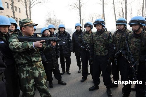 中国维和警察培训中心教员向队员讲授激光模拟战术系统使用方法。中新社发 由永怀 摄