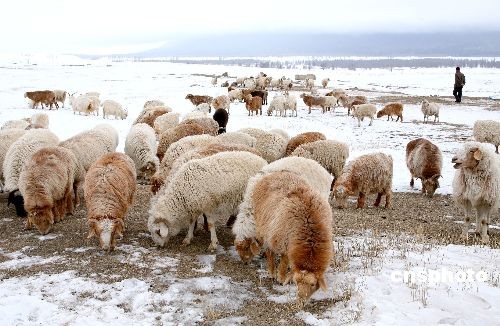 2月5日,受冷空气影响,新疆哈密北部沿天山一带降雪,缓解了当地旱情,对草场返青十分有利。