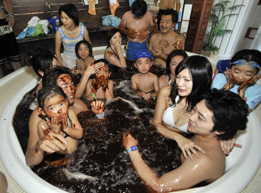 2月8日,游客们在日本神奈川县享受奇特的“巧克力浴”。