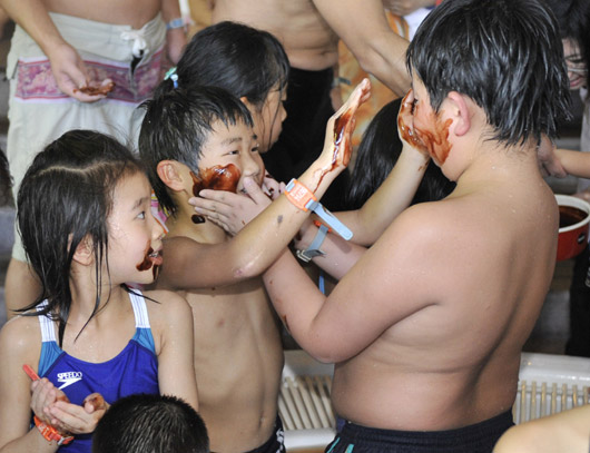 2月8日,游客们在日本神奈川县享受奇特的“巧克力浴”。