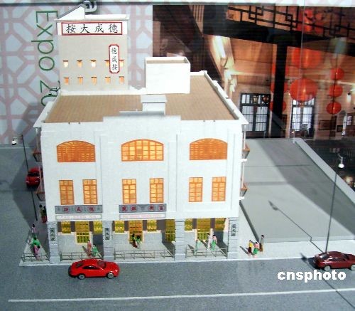 2009年2月11日,上海世博会展示中心展出的澳门百年老当铺“德成按”模型。2月9日,上海世博会城市最佳实践区澳门实物建设案例“德成按”在上海世博园区破土动工。据了解,德成按”实物建设案例在城市最佳实践区内,占地486平方米,总建筑面积1949.7平方米,建筑物总高度为23.68米。