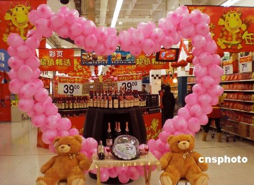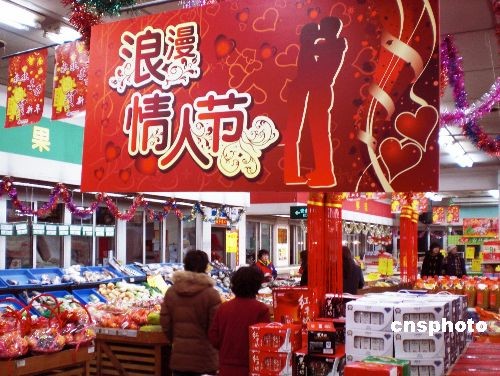 2月11日,情人节临近,天津商场节日气氛渐浓,各大商家也开始精心布置门面,迎接“情人节”购物季的到来,一场“情人节”商战正在悄然打响。中新社发 金立冬 摄