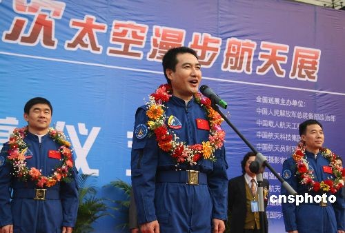 2月13日,“飞天壮歌—中国首次太空漫步航天展”全国巡展首站在河北石家庄市拉开帷幕,当地民众在开幕式现场表现出极大热情。此次展览由解放军总装备部政治部、中国载人航天工程办公室、中国航天科技集团公司等单位主办。中新社发 翟羽佳 摄
