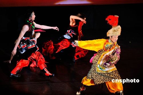 当地时间二月十三日晚,“四海同春”艺术团在硅谷库柏蒂诺市佛林特中心剧场上演《快乐藏人》。这是艺术团在美国访问的最后一站。中新社发 陈钢 摄