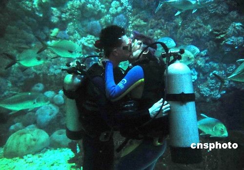 图:青岛情侣水下演绎浪漫情人节(3)——中新网