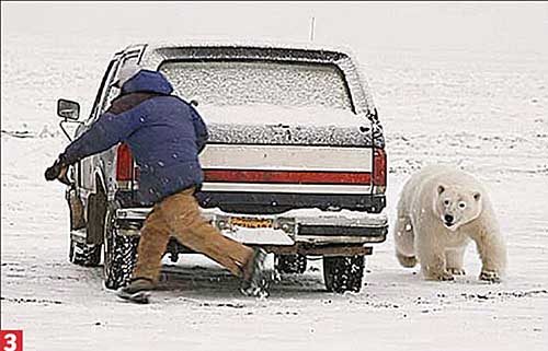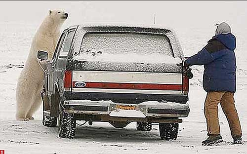 美国阿拉斯加州一名男子在大雪天驾车出行时,不慎遇到一只强壮的北极熊。这只北极熊饥饿难耐,想拿这名男子当“晚餐”,于是北极熊和这名男子在雪地里绕着车展开一场“猫捉老鼠”的惊险游戏。最终男子成功摆脱了北极熊的追逐,死里逃生。