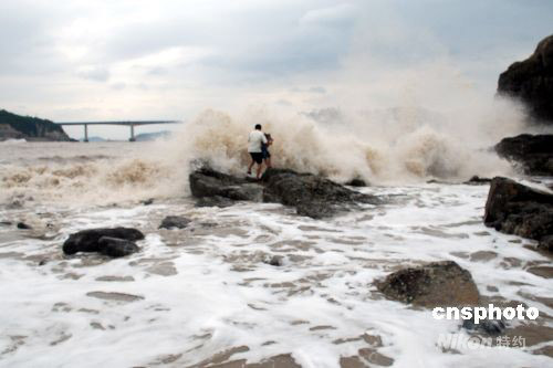 08年9月28日,受超强台风“蔷薇”影响,浙江温州市洞头岛海域已是波涛汹涌,海礁上掀起的巨浪高达10多米。下午2时许,一对外地父女在海边游玩时不慎被突涨的潮水困在礁石上,随时可能被海浪吞噬。正在海边巡逻的洞头边防大队官兵发现险情后,迅速展开紧急营救,成功将父女从海浪中安全救上岸。