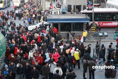 2月15日,北京站、北京西站迎来最大学生返京客流,形成节后的又一客流高峰,同时也宣告今年的春运接近尾声。由于16日(周一)清华、北大等北京多数高校将正式开学,近日北京各大火车站迎来了学生返程的高峰。另外,13日全国铁路客流创新高达到570.9万,预计未来几天仍将保持较高水平。中新社发 郑雄增 摄
