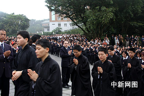 2月15日,台湾法鼓山创办人圣严法师追思法会暨植存在法鼓山举行。图为数以万计的信众从台湾各地前来法鼓山,送圣严法师最后一程。中新社记者 陈立宇摄