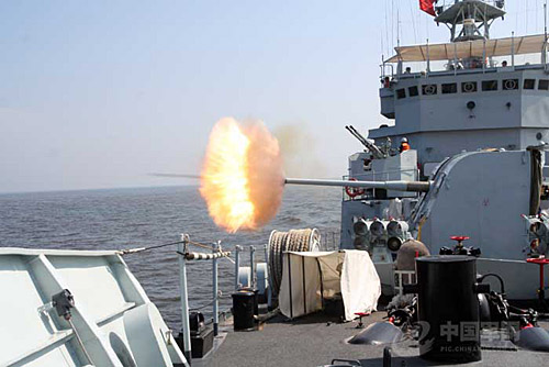 图:东海舰队战舰主炮在强电磁干扰下对海射击(2)——中新网
