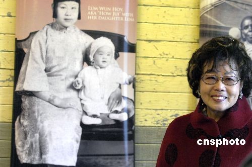华裔移民方赵玉莲捐出母亲当年被羁留时所用的衣物以及自己和母亲的照片,盼后代不忘华人移民之艰辛。中新社发 陈钢 摄