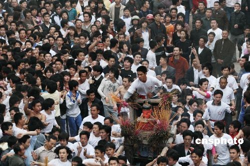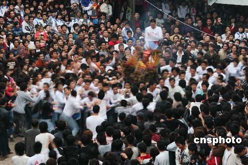图:广东汕头盐灶村 人山人海“抢财神”(2)——中新网