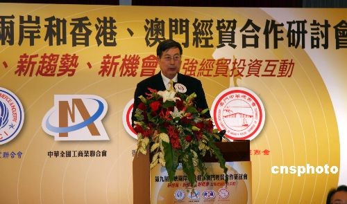 2月18日,第九届海峡两岸和香港、澳门经贸合作研讨会在台北亚太会馆开幕。
