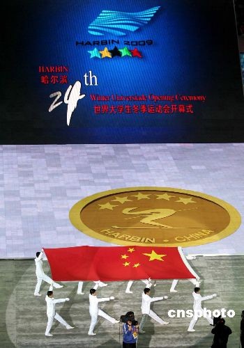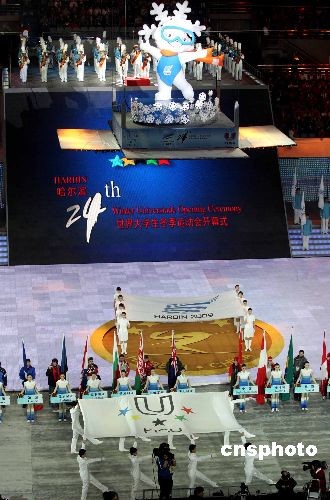 2月18日,第24届世界大学生冬季运动会开幕式在哈尔滨国际会展中心体育馆隆重举行。“冰雪、青春、未来”,哈尔滨大冬会在熊熊圣火的映衬下揭开大幕,在未来10天内来自45个参赛代表团青春洋溢的冰雪健儿们将在赛场上展开竞逐!本届大冬会是中国首次承办世界综合性冬季体育盛会,也是继北京奥运会和残奥会后中国又一次承办的国际性赛事。中新社发 富田 摄