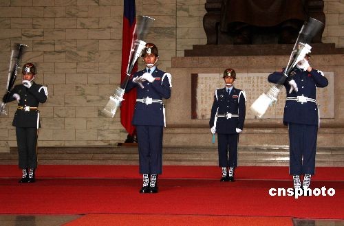 2月21日,台湾“中正纪念堂”仪仗队正在进行精彩的表演。自1月24日恢复仪仗队表演以后,纪念堂内游客大增。中新社发 陈立宇 摄