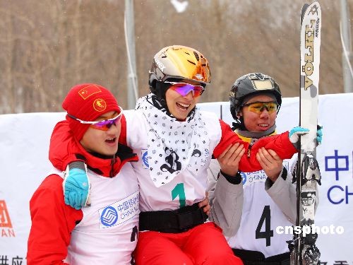2月24日,第24届世界大学生冬季运动会在哈尔滨亚布力滑雪场进行自由式滑雪空中技巧混合团体赛。实力强劲的中国队继囊括男女个人的全部奖牌之后,再次将混合团体的金牌摘走。中国队派出男女个人赛的冠军贾宗洋和李妮娜,以及男队的刘忠庆三人出战,三人均完美地完成动作,最终以总分335.24获得冠军。白俄罗斯队以总分288.73获得亚军,俄罗斯队以251.35分获得一枚铜牌。中新社发 富田 摄