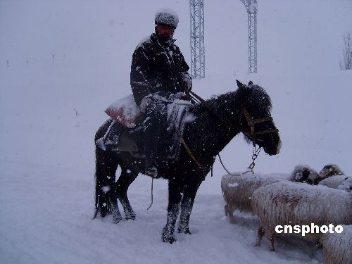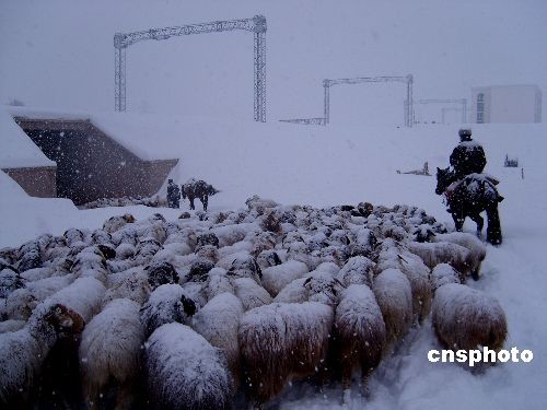 近日,伊犁河谷普降暴雪,积雪达50-80公分。牧民们积极将牛羊转场到安全住处,并设法向安稳处筹措草料,应对雪灾。