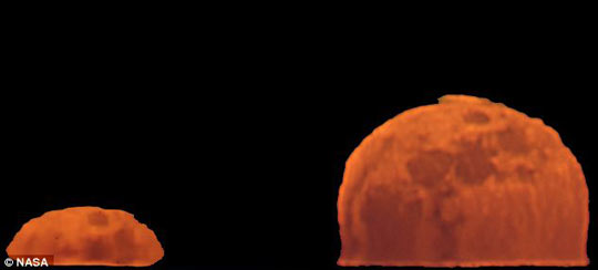据英国媒体报道,一位名叫约翰·斯特森的美国业余摄影师日前拍摄到一组月亮蜃景的壮观照片。这种罕见的天文现象是因不同温度的层层空气使月光弯曲形成的。