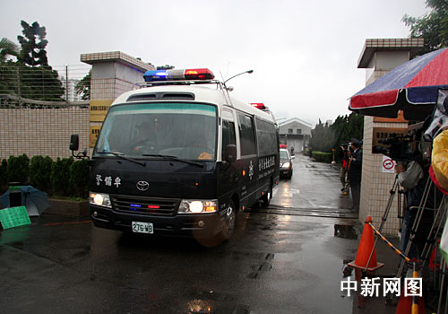 图为今天早上八时三十五分许,押着陈水扁的囚车开出台北看守所,前往地院出庭。 中新社记者 陈立宇 摄
