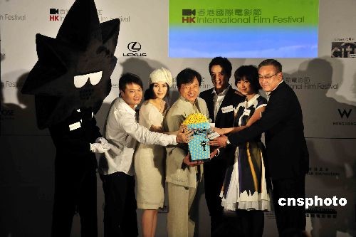 二月二十六日,第三十三届香港国际电影节在香港举行记者会,宣布电影《新宿事件》及《天水围的夜与雾》为开幕电影。中新社发 谭达明 摄