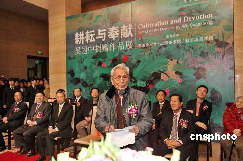 著名画家吴冠中致辞。中新社发 王保胜 摄