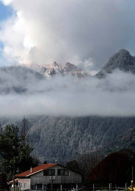 2月26日,在智利首都圣地亚哥以南1200多公里的柴滕市,柴滕火山喷发出的烟雾迷漫在空中。