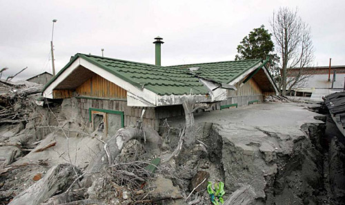 图:智利火山再度爆发之后周边城镇一片狼藉(3)