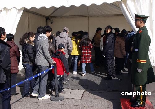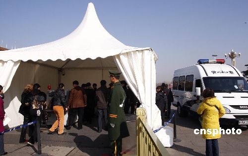 2月27日,全国“两会”即将召开,北京天安门广场加强安检工作。中新社发 郑雄增 摄