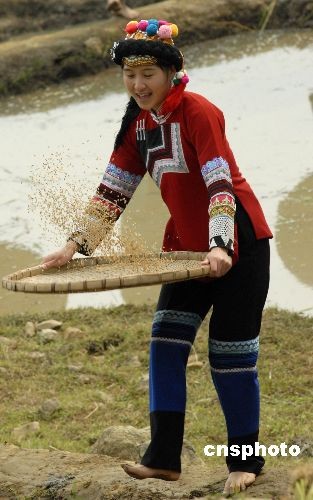 图为哈尼族姑娘参演《哈尼梯田》。中新社发 保旭 摄