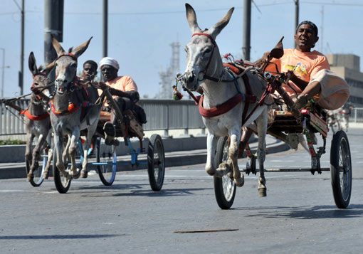 3月1日,巴基斯坦的驴车夫们在卡拉奇举办的驴车大赛中“驾驴狂奔”。驴车大赛是当地一个传统节日的组成部分。