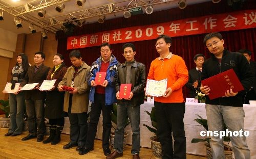 2009年3月2日,中国新闻社2009年工作会议举行,国侨办主任李海峰等出席,并为获得中新社新闻奖项的记者颁发证书。中新社发 王丽南 摄