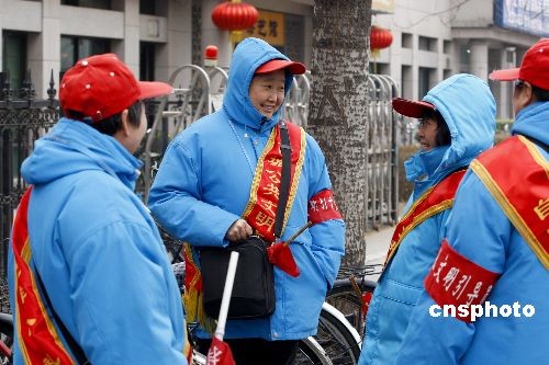 3月3日,全国政协十一届二次会议在北京人民大会堂开幕,北京公交车站工作人员统一着装,以阳光的微笑来服务到京旅游的乘客和出行的市民。中新社发 郑雄增 摄