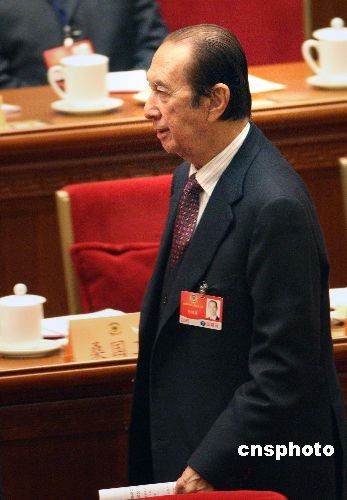 3月3日下午,全国政协十一届二次会议在北京人民大会堂开幕,大会主席团成员、全国政协委员何鸿燊走上主席台。中新社发 任晨鸣 摄