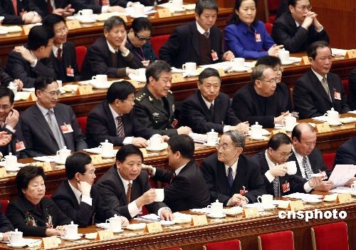 3月3日,全国政协十一届二次会议在北京人民大会堂开幕,委员们在会议开幕前交流。中新社发 盛佳鹏 摄