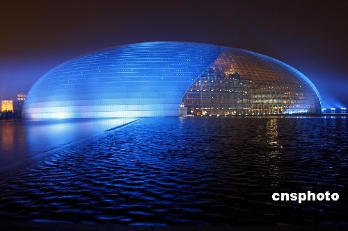3月3日晚,北京按重大节日标准开启城市夜景照明设施,中国国家大剧院在灯光辉映下璀璨迷人。北京市政管委下发通知,要求3月3日和3月5日全国政协和全国人大开幕当天,北京市所有夜景照明设施全部开启。中新社发 郑雄增 摄
