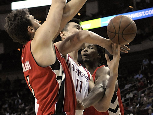 当地时间3月3日晚,中国球员姚明所在的NBA火箭在休斯顿主场以107比97击败猛龙,登上西部第三的位置。姚明拿下了20分11个篮板。