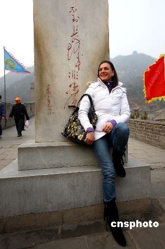 图:撑杆跳女皇伊辛巴耶娃游览中国长城(2)——中新网