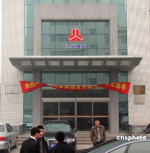 3月4日上午,北京三元集团获拍石家庄三鹿集团部分破产资产,包括三鹿集团的土地使用权、房屋建筑物、机器设备等资产,以及三鹿集团所持有的新乡市林鹤乳业有限公司98.8%的投资权益。图为原三鹿集团总部大楼前,三元食品标志已经替换原来的三鹿标志。中新社发 翟羽佳 摄