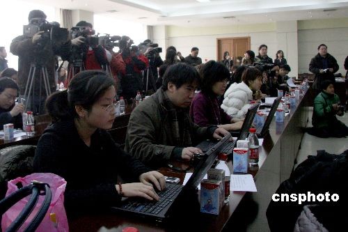 3月4日,因“三聚氰胺”事件而破产的中国乳业巨头石家庄三鹿集团股份有限公司挂牌拍卖,北京三元集团毫无悬念地入主三鹿。图为关注这一并购事件的中外媒体。中新社发 翟羽佳 摄